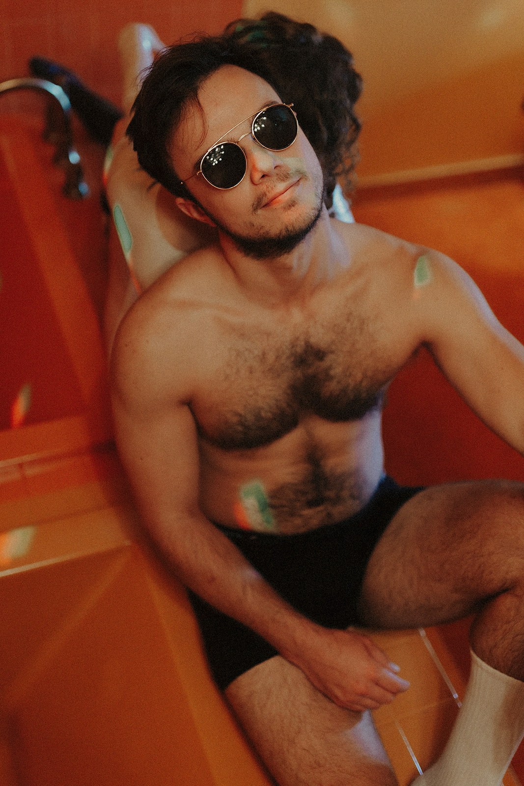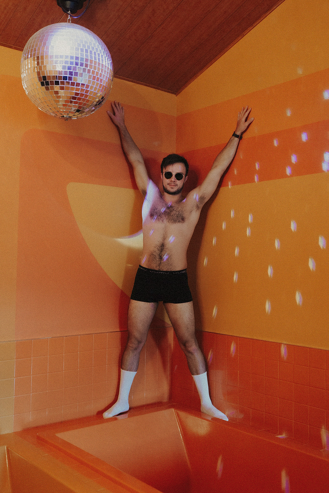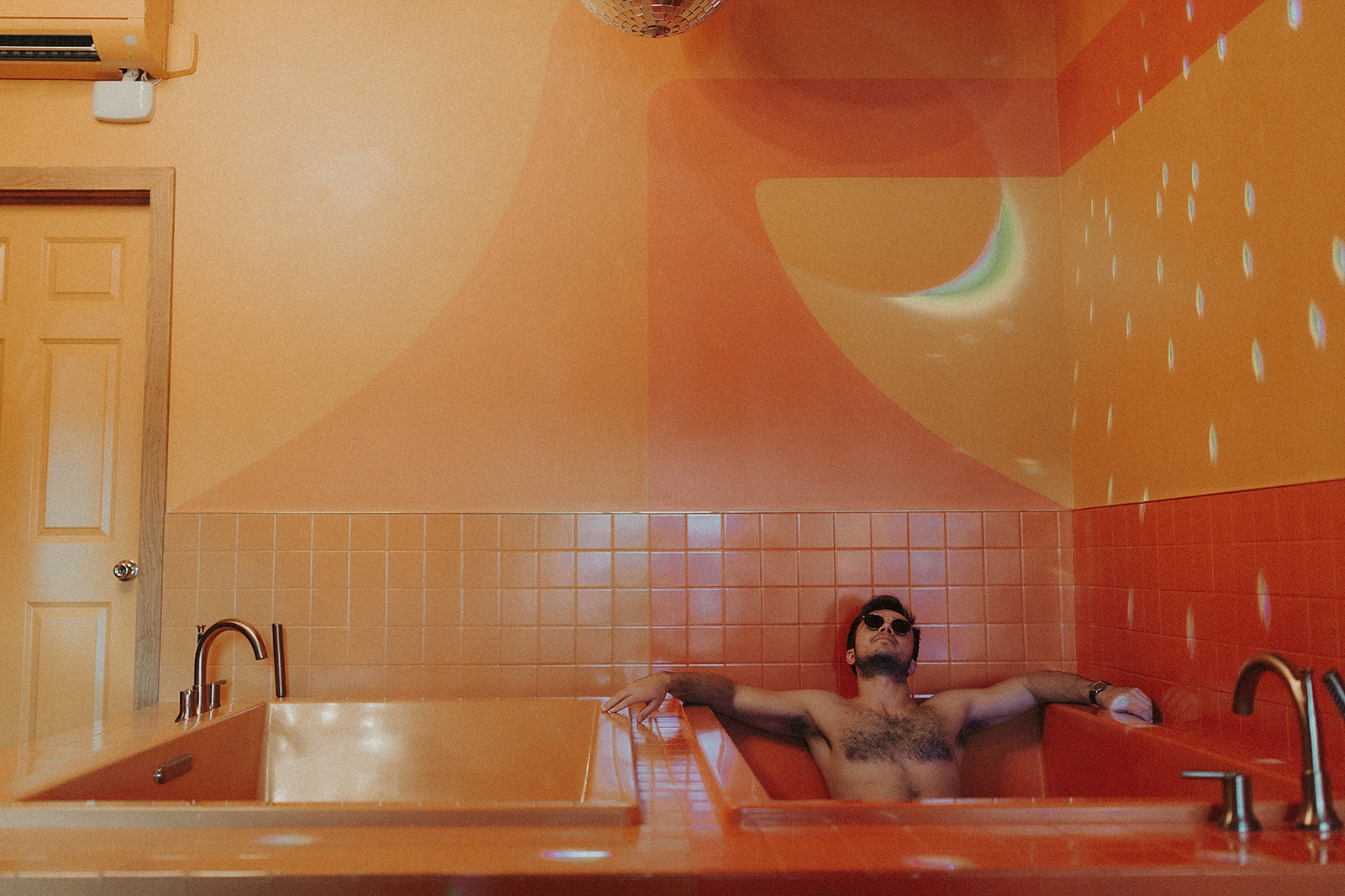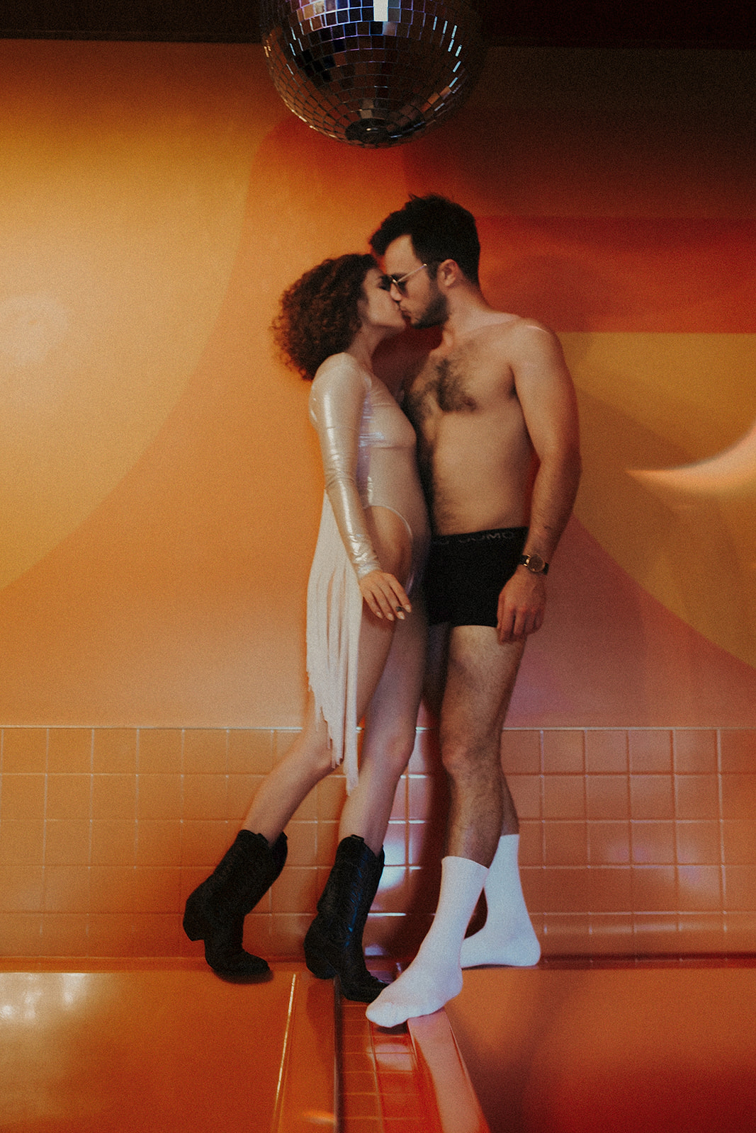 The orange room—where our couples session unfolded—anchors that legacy. The double tubs side-by-side nod to playful retro luxury. The décor whispers vintage glamour. And the overall mood? It’s both fun and raw, perfect for a session that’s more than posed—it’s alive.